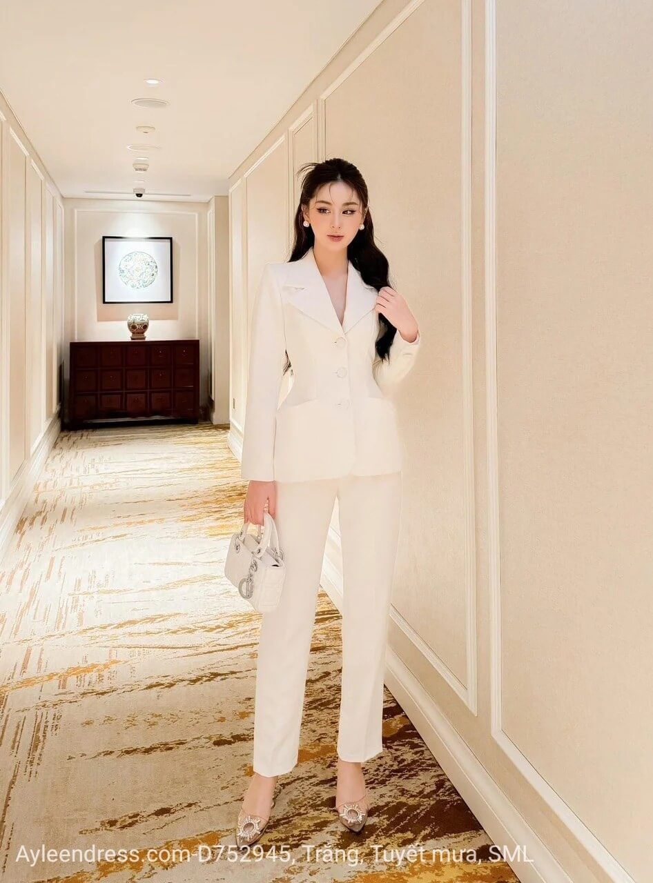 Set bộ vest kiểu áo tay dài phối nút quần baggy sang trọng (CÓ ĐỆM VAI)